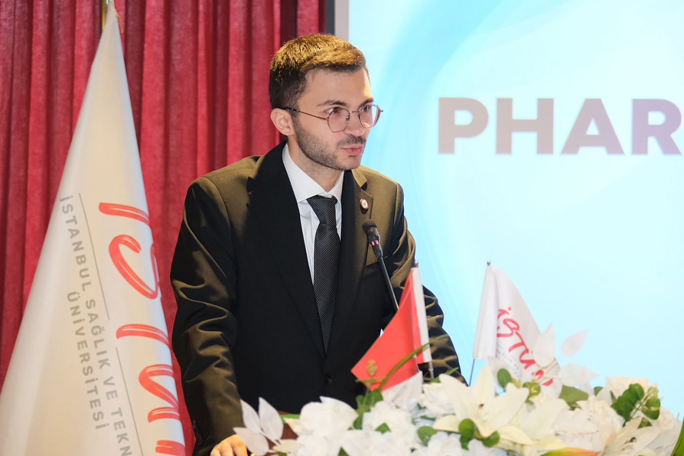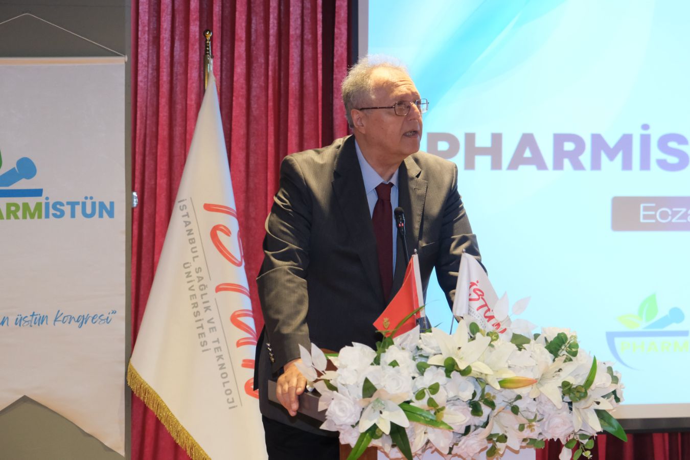 Eczacılık Fakültesi Dekanı Prof. Dr. Ahmet Araman, II. PHARMİSTÜN Kongresi kapsamında emek veren tüm öğrencilere teşekkür etti ve eczacılıkla ilgili mevcut durum ve gelecekteki gelişmeleri aktardı. PHARMİSTÜN Kongresi’nin fakülte adına önemli etkinliklerden biri olduğunun altını çizdi.