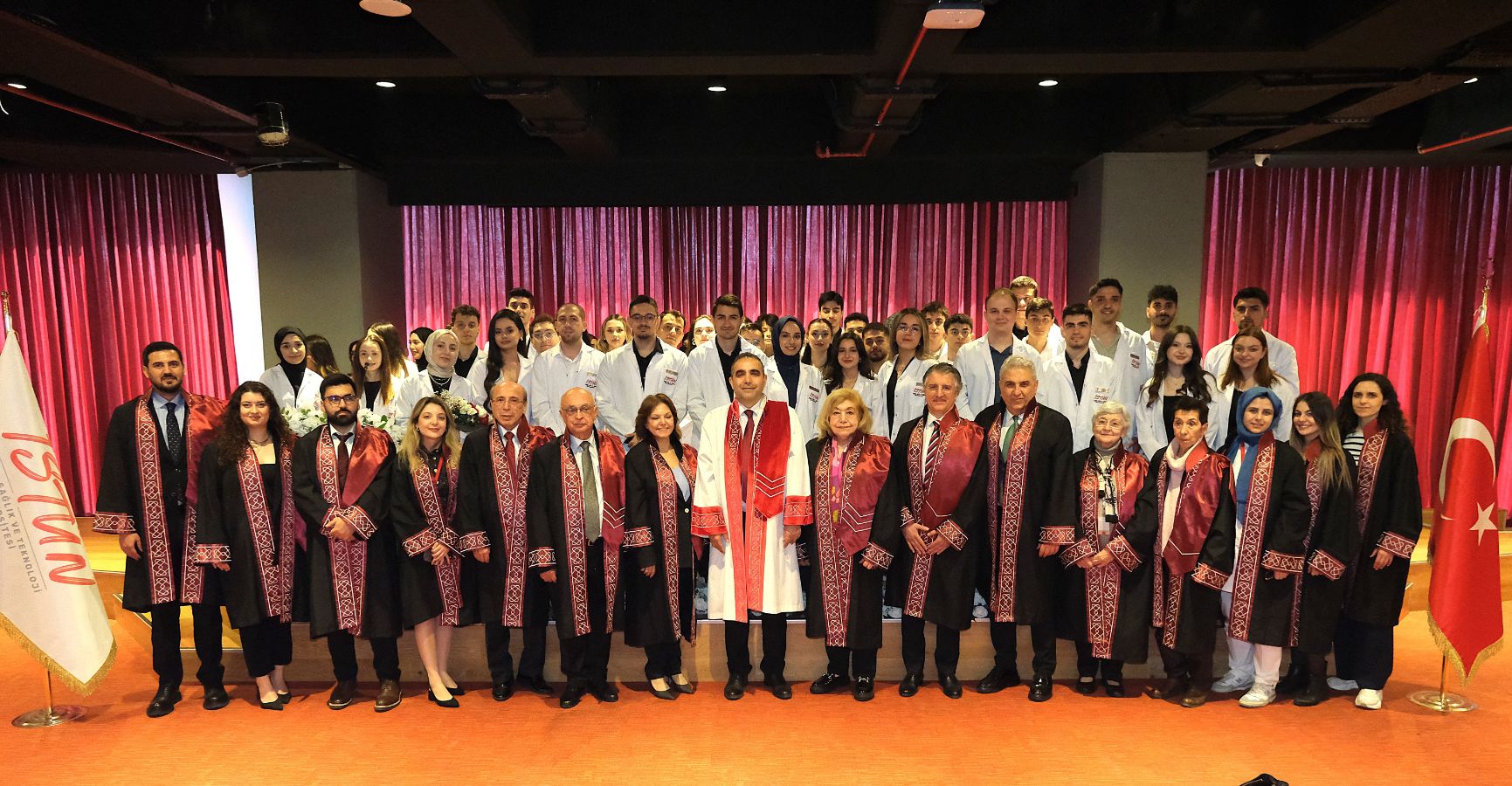 Törenin sonunda, Sağlık Bilimleri Fakültesi Dekanı Prof. Dr. Nilgün Sema Genç, Mühendislik ve Doğa Bilimleri Fakültesi Dekanı Prof. Dr. Şükrü Alp Baray ile öğretim üyeleri, öğrencilerimize beyaz önlüklerini giydirerek bu özel ana tanıklık etti. Tören, toplu fotoğraf çekimiyle son buldu.