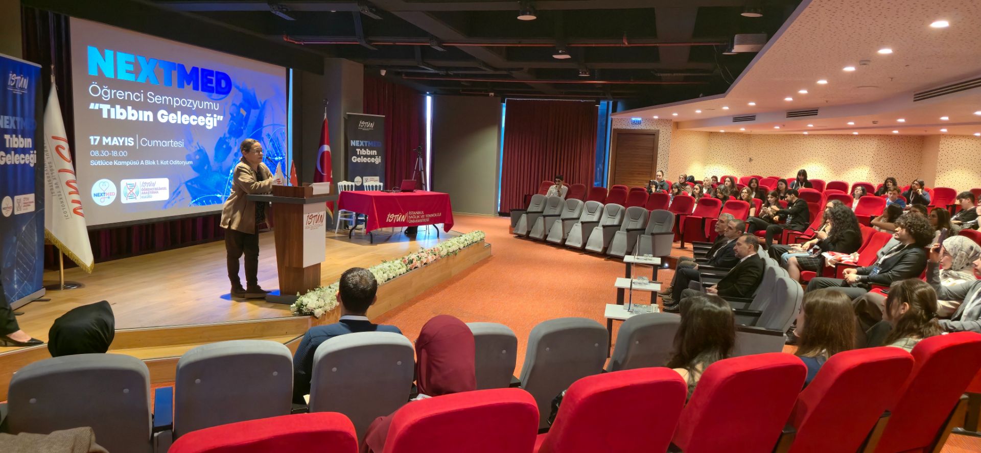 İstanbul Sağlık ve Teknoloji Üniversitesi Tıp Fakültesi ve ile Öğrenci Bilimsel Araştırma Kulübü tarafından düzenlenen “NEXTMED Öğrenci Sempozyumu” 17 Mayıs 2025 Cumartesi günü Sütlüce Yerleşkesi Oditoryumu’nda gerçekleşti. “Tıbbın Geleceği” temasıyla düzenlenen sempozyum, alanında uzman isimleri ve geleceğin hekim adaylarını bir araya getirerek tıbbın bilimsel, teknolojik ve etik boyutlarını ele aldı.