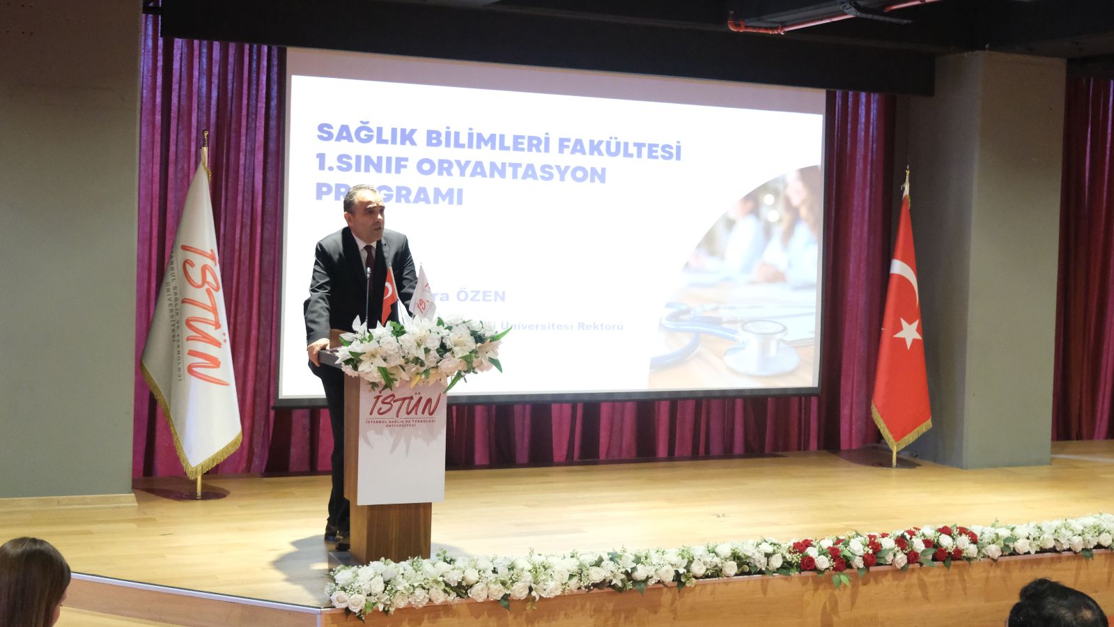 İstanbul Sağlık ve Teknoloji Üniversitesi Sağlık Bilimleri Fakültesi tarafından, 24 Eylül Çarşamba günü 1. sınıf öğrencilerine yönelik Oryantasyon Programı düzenlendi. Oditoryum’da gerçekleştirilen program, fakülte yönetimi ve üniversite üst yönetiminin açılış konuşmalarıyla başladı. Rektör Prof. Dr. Buğra Özen ile Sağlık Bilimleri Fakültesi Fakülte Dekanı Prof. Dr. Nilgün Sema Genç'in konuşmalarında, öğrencilere üniversiteye hoş geldiniz mesajları verildi ve akademik yolculuklarında başarı dileklerinde bulunuldu.